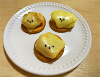 - クラッカーの上にペースト、スライスチーズの順にのせていきます。